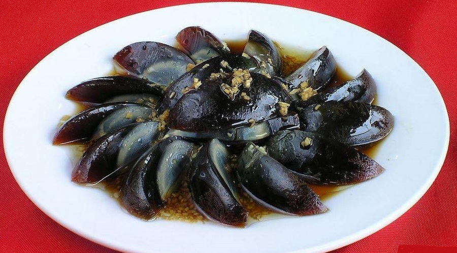 缠丝鸭蛋:煮熟后蛋呈黄红色,切开后可见内有缠绕着一圈圈不同色环,由外及内缠绕着中心,故名缠丝蛋。其蛋纹理清晰,口感有肉劲,味道鲜美。含多种维生素和微量元素,营养丰富。